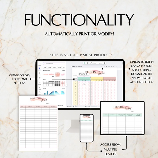 Printable symptom tracker, Medication tracker, Health tracker, Health & wellness planner bundle, Printable PDF, A4 canva
